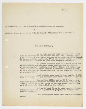 5. Lettre d'Antoinette Guerrini au directeur de l'EN de Trouville (Fonds de l'École normale d'institutrices)